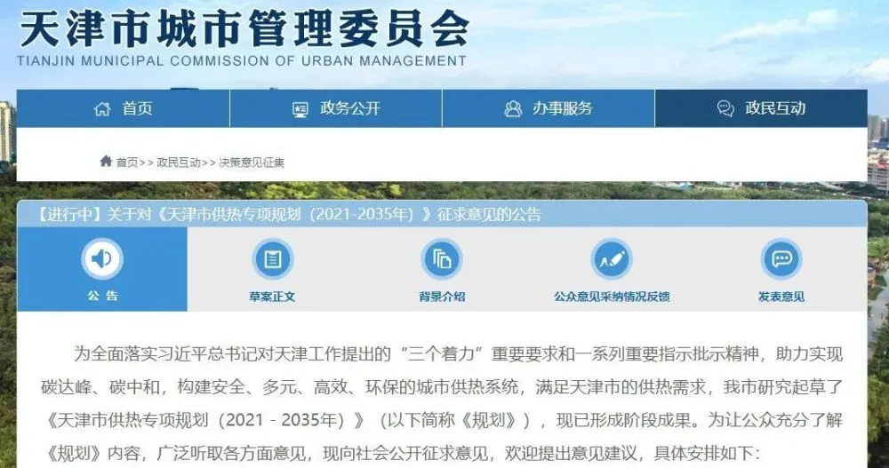 11月23日,天津市城市管理委員會、天津市城市管理研究中心官網發布關于對《天津市供熱專項規劃(2021-2035年)》征求意見的公告,為全面落實國家生態文明思想和一系列重要指示批示精神,構建安全、多元、高效、環保、智慧的城市供熱系統,提高資...