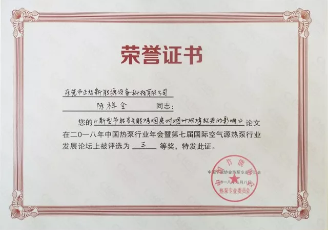 值得一提的是,在今年的2018中國熱泵行業年會暨第七屆國際空氣源熱泵行業發展論壇期間,由正旭新能源副總經理、技術總工程師陳祥全撰寫的論文《新型節能空氣能煙葉烘烤效果的影響》,經專家組嚴格的評選,獲得2018中國熱泵行業年會優秀論文三等獎。以下為論文內容: