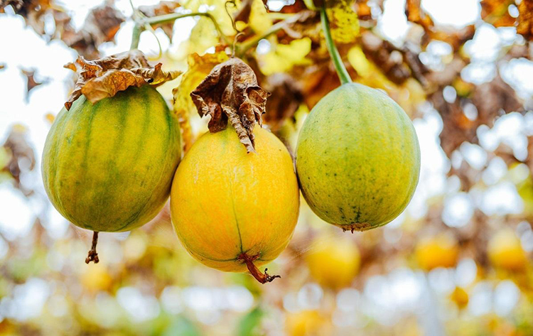 秋季瓜蔞果皮表面開始有白粉,并為淡黃色即可采收,連藤剪下,室內放置兩到三天后,編結成串,也可縱切2瓣或4瓣,掛在陰涼通風處晾曬,冬季轉到室內晾干,至春節前后干燥后,剪下果柄,用軟紙逐個包裝保存,貯存過程中往往會互相擠壓,破碎,到了夏季極易受潮,近一半的瓜蔞發生霉變蟲蛀,造成損耗。