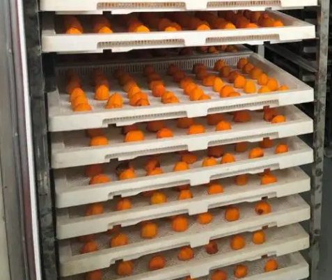 1. 將柿子洗凈去皮后擺放到物料盤上,放入烘干房準備烘干;