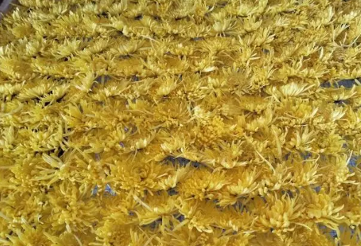 菊花烘干項目為例,新鮮菊花含水量高,花瓣部分含水量相對較少,組織較嫩,容易干燥,花頭部分含水量大,可達80%以上,所以菊花是一種含水量不均勻的物料。干菊花大多用于泡茶用,味濃香甜,去膩消食、醒腦益神,因此市場上對于菊花的色香形味要求很高。為此正旭團隊經過實地考察之后,最終決定投入15臺