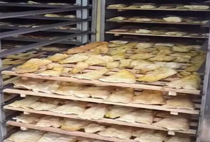 6. 腌制之后,繼續烘干。將烘干房溫度設為65攝氏度,烘干15小時,連續排濕,等到茄子含水量達到13%即可,此時茄子顏色變黑褐色可以折斷,但仍為半成品;