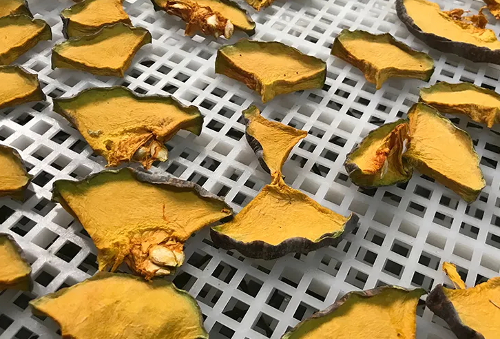 4. 南瓜片烘干時間約為8小時,前期將溫度設置為35攝氏度,烘干2小時;