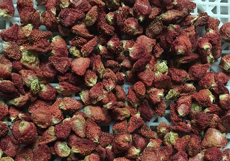 1. 采用多溫區分層控溫,速度可調、自動控制,烘制出的草莓果干顏色為絳紅色,大小均勻,外形完整,具有草莓鮮果的芳香,口味酸甜,口感香脆;