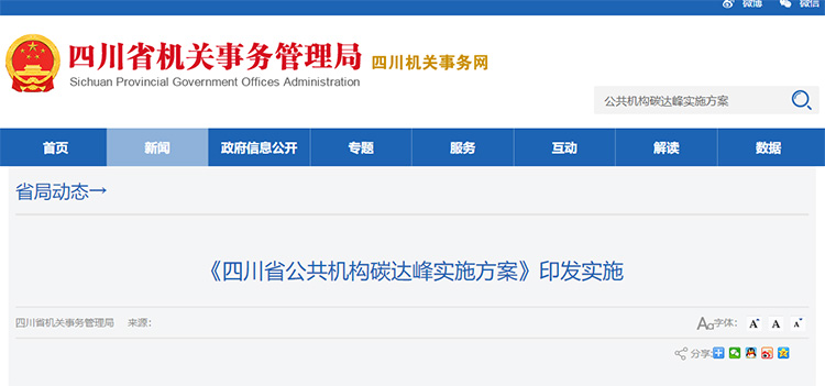 近日,四川省機關(guān)事務(wù)局聯(lián)合四川省發(fā)改委、省財政廳、生態(tài)環(huán)境廳聯(lián)合印發(fā)了《四川省公共機構(gòu)碳達峰實施方案》(以下簡稱《方案》),方案對未來幾年全省公共機構(gòu)能源消費總量提出具體的實施目標,為全面實現(xiàn)全省2030年碳達峰目標做出了表率。