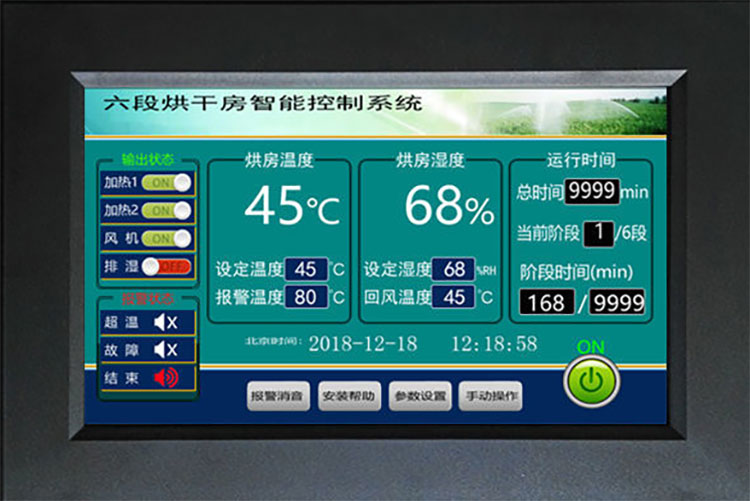 熱泵烘干機采用智能分段烘干的方式模擬自然干燥,是一種比較溫和的烘干方式。前期只需根據(jù)物料屬性設置好不同時間段的烘干溫濕度,系統(tǒng)自動根據(jù)烘干曲線調節(jié)溫濕度。